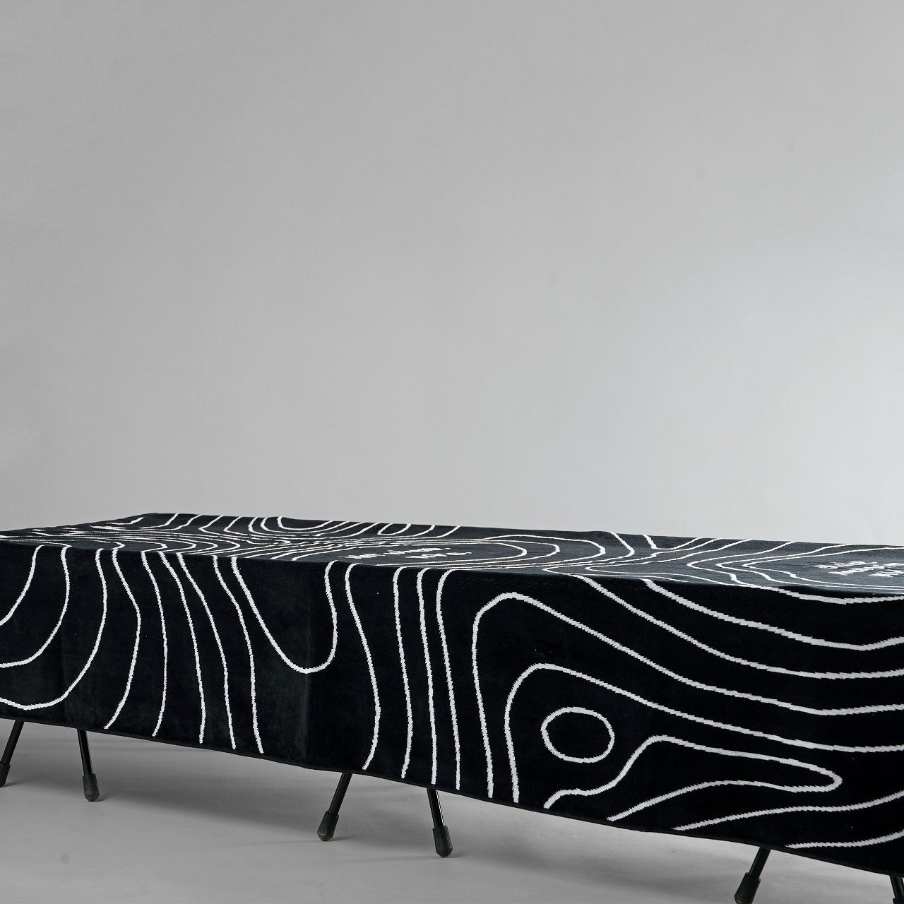 一般的なバスタオルよりも大きめの100×190cmサイズで、コットに掛ければカバーとして、またアウトドアでのラグやブランケット代わりにも活躍します。肌触りの良い**コットン100%**を使用し、吸水性と快適さを両立。